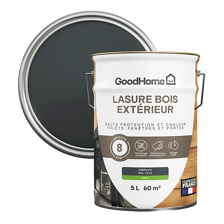 Lasure bois extérieur Baltimore satin 8 ans GoodHome 5L