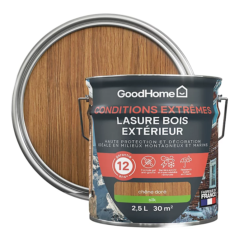 Lasure bois extérieur chêne doré satin 12 ans GoodHome 2.5L