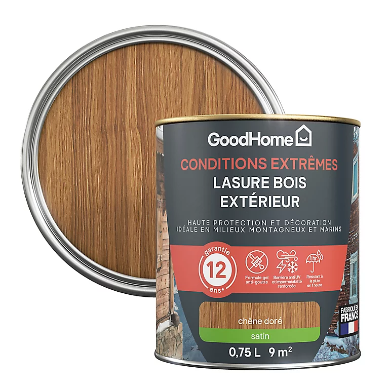 Lasure bois extérieur chêne doré satin 12 ans GoodHome 750ml