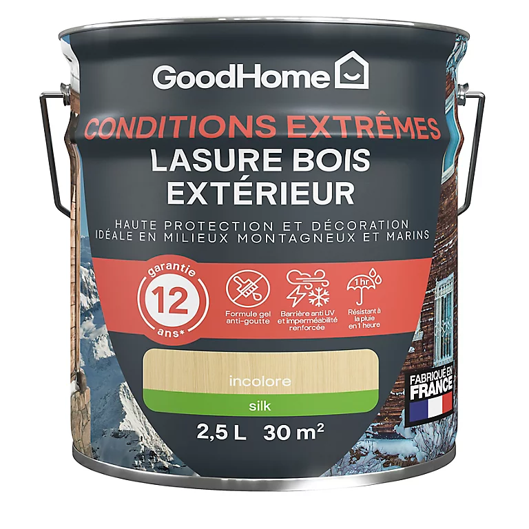 Lasure bois extérieur incolore satin 12 ans GoodHome 2.5L