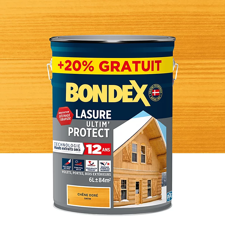 Lasure bois extérieur Bondex garantie 12 ans chêne doré satin 5L +20% gratuit