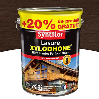 Lasure Syntilor Xylodhone Ultra Hautes PerFormances chêne rustique satin 5L + 20% gratuit