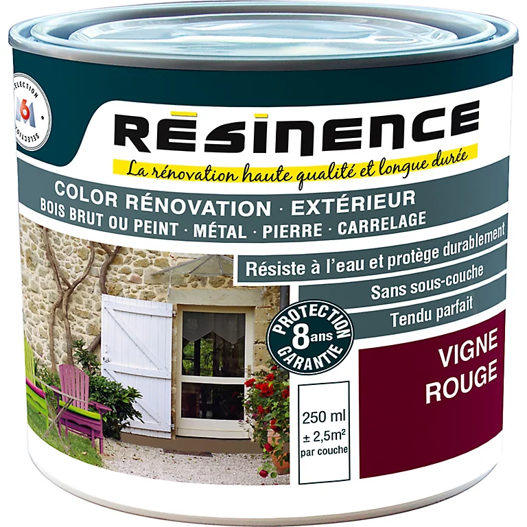 Découvrez la peinture rénovation multi-supports couleur vigne rouge aspect satin de la marque Résinence. Elle affiche une contenance de 0,25 litres.