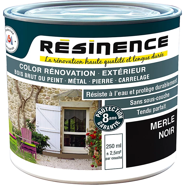 Découvrez la peinture rénovation multi-supports couleur merle aspect satin de la marque Résinence. Elle affiche une contenance de 0,25 litres.