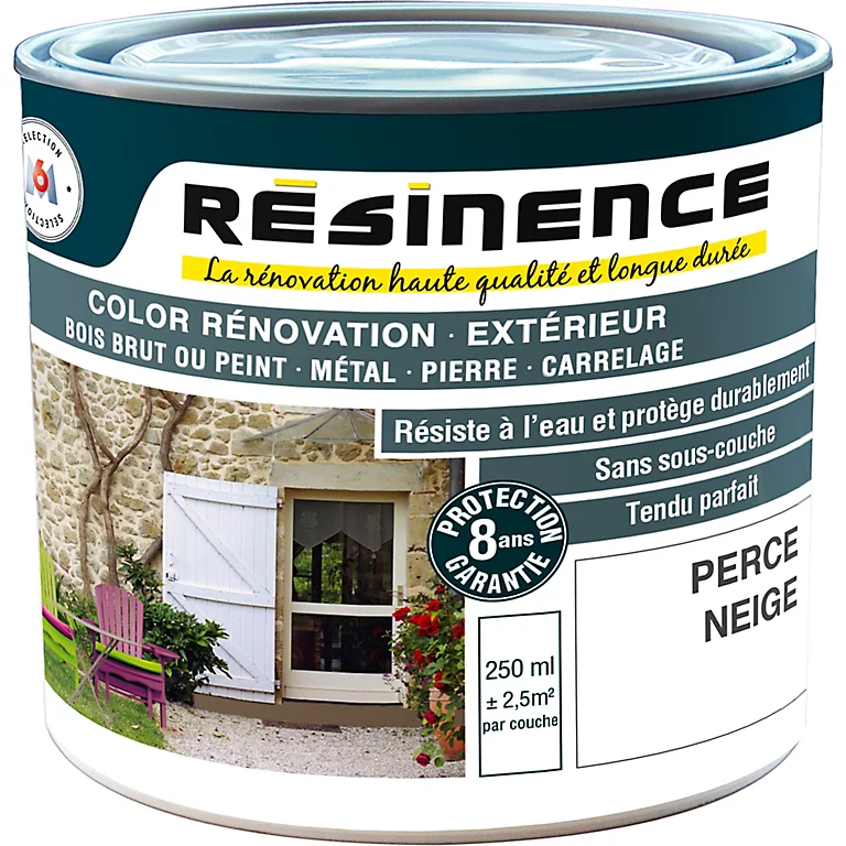 Découvrez la peinture rénovation multi-supports couleur perce neige aspect satin de la marque Résinence. Elle affiche une contenance de 0,25 litres.